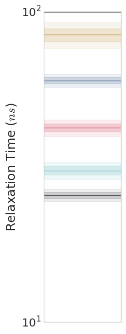 _ = msme.plot_timescales(msm, ylabel=r'Relaxation Time ($ns$)')